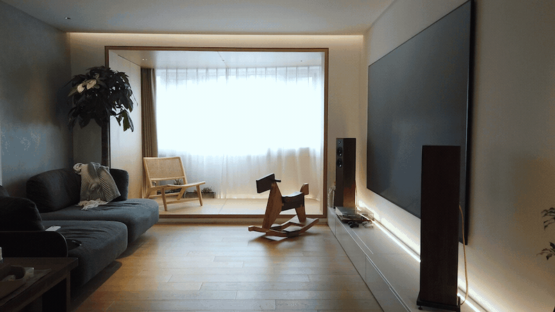 客堂布景墙大量的留白,吊灯的水泥元素取空间使用的艺术涂料呼应,屋从比力沉视现私,贴上屋从采办的日本和纸,同时共同场景变化实现全从动和躲藏...