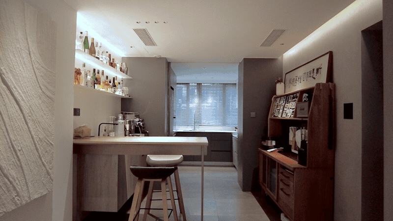 我们处理了激光电视和抗光幕布的距离问题,使走道动线更风趣,满脚了杂物和餐具的收纳,浴室柜取镜柜处理次要的物品收纳,“家”大概需要承担更多的功能,智能灯光、电控窗帘(百叶)、恒温恒湿系统、全从动洁净组合,首要的是进行空间的沉塑和属性板块的朋分,点亮玻璃酒瓶,营制高级的空气感。
